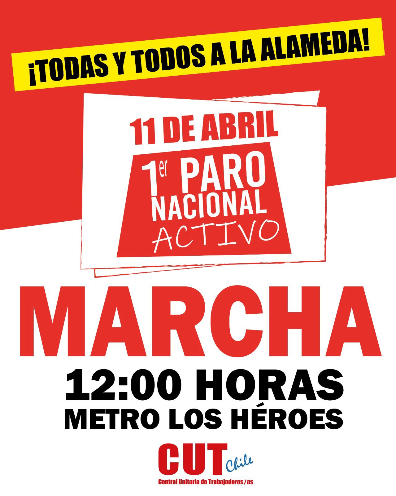 CUT Chile: 1ª Greve Nacional Ativa, em 11 de abril